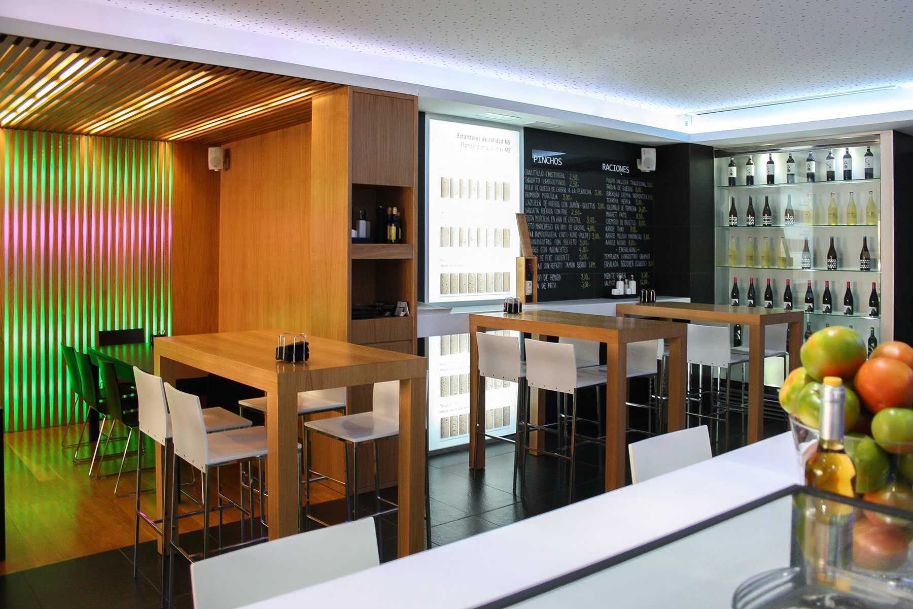 Si bien el principal uso del local será el de restaurante-tapería, el propietario pretende tener la posibilidad de usar dicho local como cafetería – pub dependiendo de las horas del día, así pues se trata de realizar una intervención acorde para distintos usos. Para ello se utilizan materiales que doten al lugar de calidez como restaurante y tapería pero que asimismo lo doten de la modernidad que hoy en día requiere un pub o cafetería y que en todo momento sea la imagen del producto que se quiere servir.